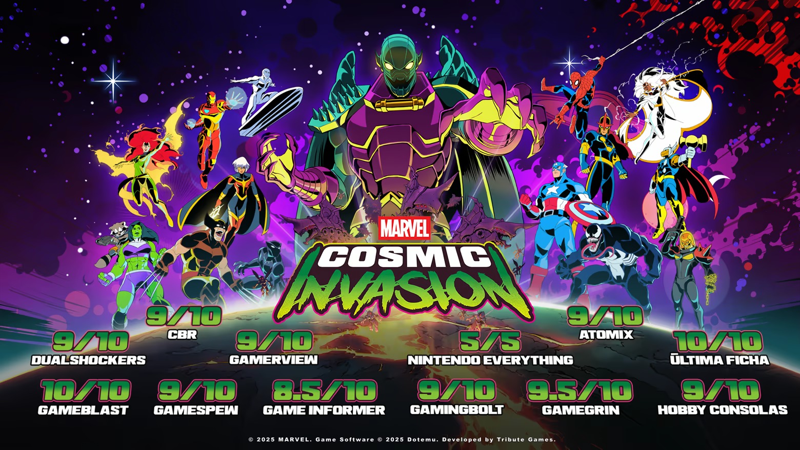 Tribute Games and Dotemu are teaming up again, in collaboration with Marvel Games, to craft an original, fresh beat 'em up. Featuring dynamic combat combos and dazzling pixel art, this planet-hopping adventure stands as a love letter to the Marvel Universe.